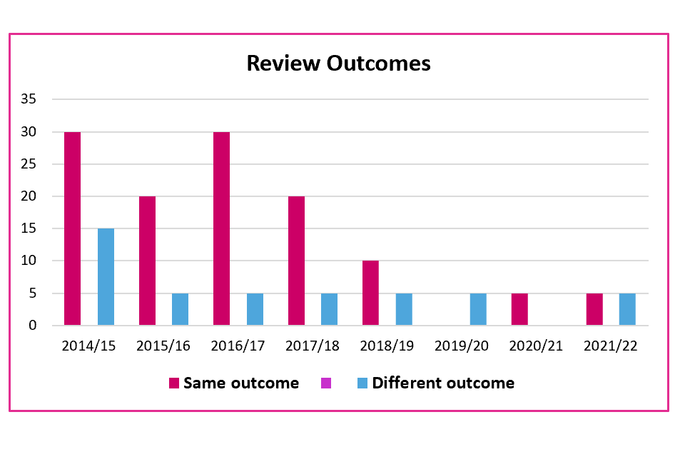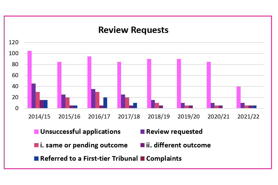 Since the scheme began in 2014, 22% of unsuccessful decisions have been reviewed.