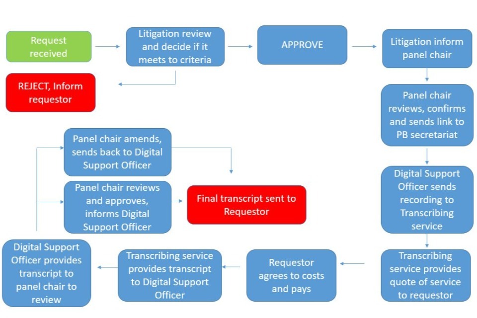We have also revised the published guidance for the parties on requesting a transcript of the proceedings which sets out the criteria we use and the process that needs to be followed. There is also a simple flowchart with the key steps involved.