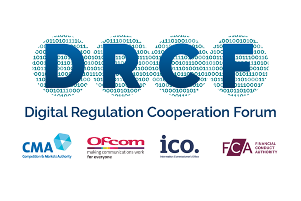 Logos: Digital Regulation Cooperation Forum; Competition and Markets Authority; Ofcom; Information Commission Officer, and Financial Conduct Authority