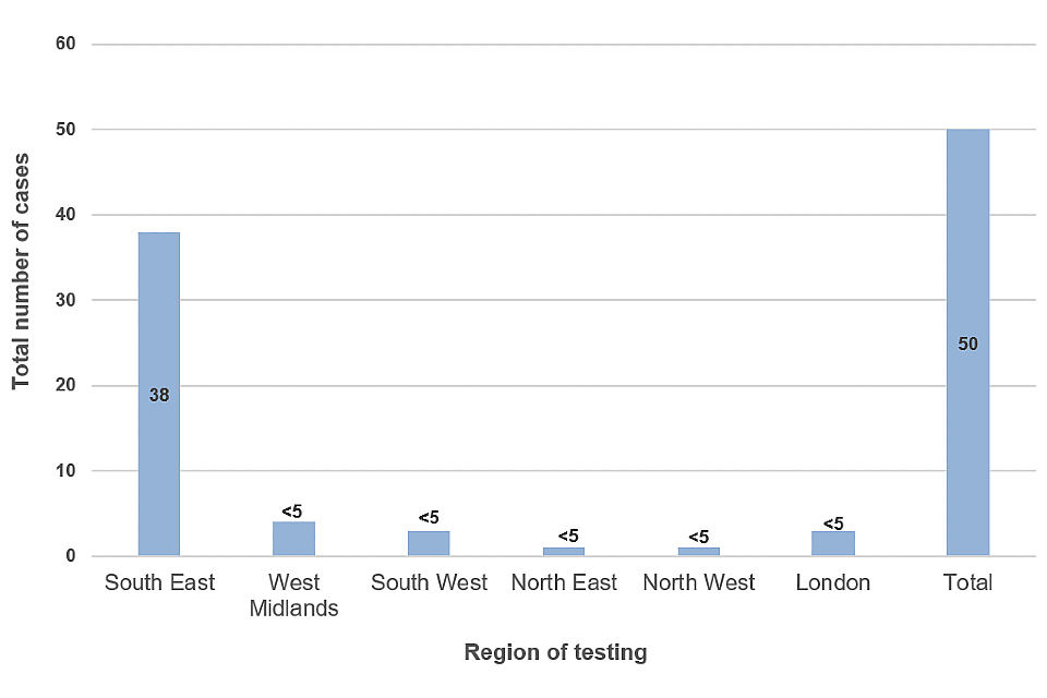 Most cases have had onset of symptoms prior to arrival into the UK suggesting infection has occurred along the extended travel route through Europe or at country of origin.