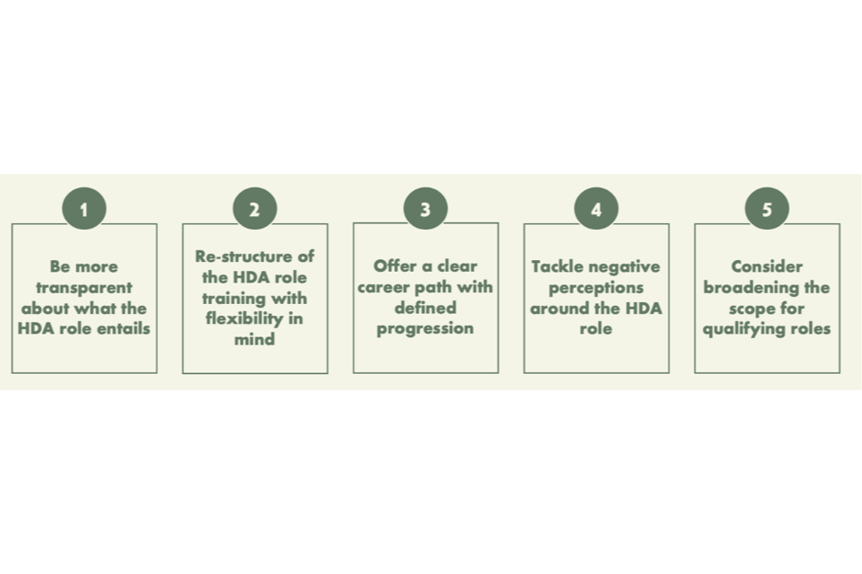 re-structuring the training process and supporting greater flexibility in HDA roles to accommodate different working preferences