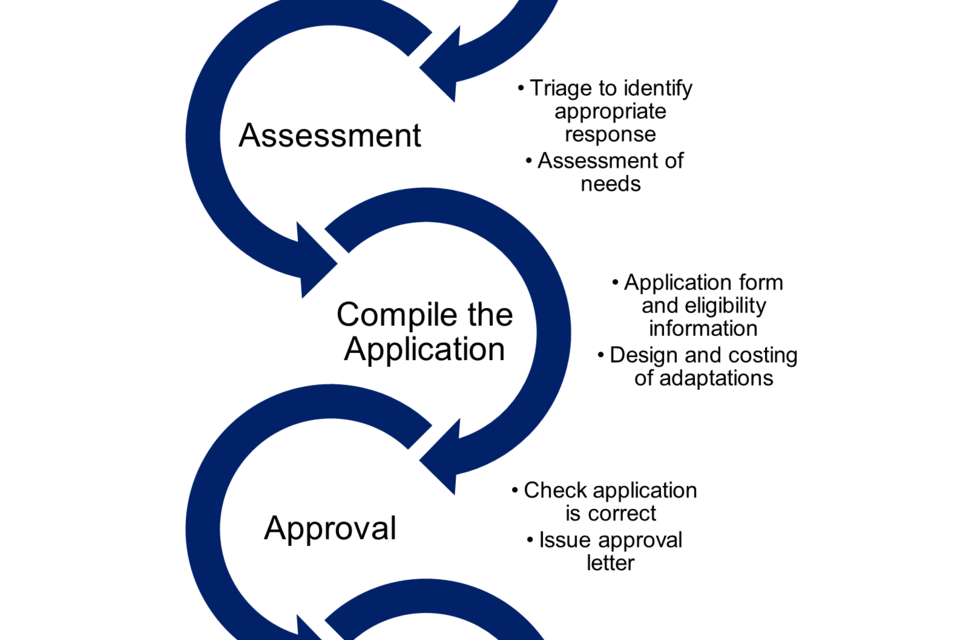 - identifying and assessing the needs of applicants, and making recommendations on how to meet those needs, including Occupational Therapists and Trusted Assessors;
