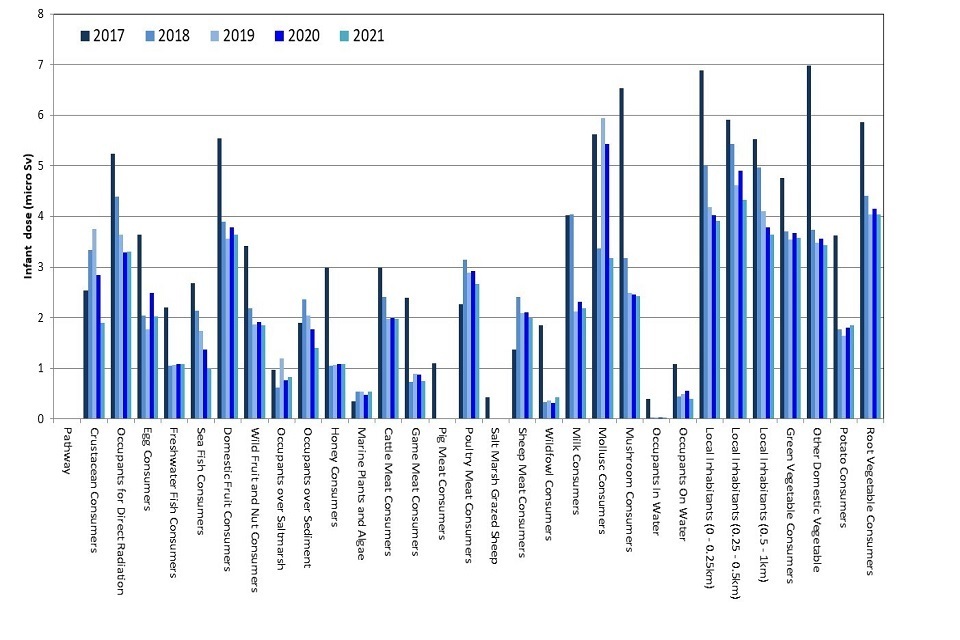 Figure C3. Radiological doses to infant representative persons (2017-2021)