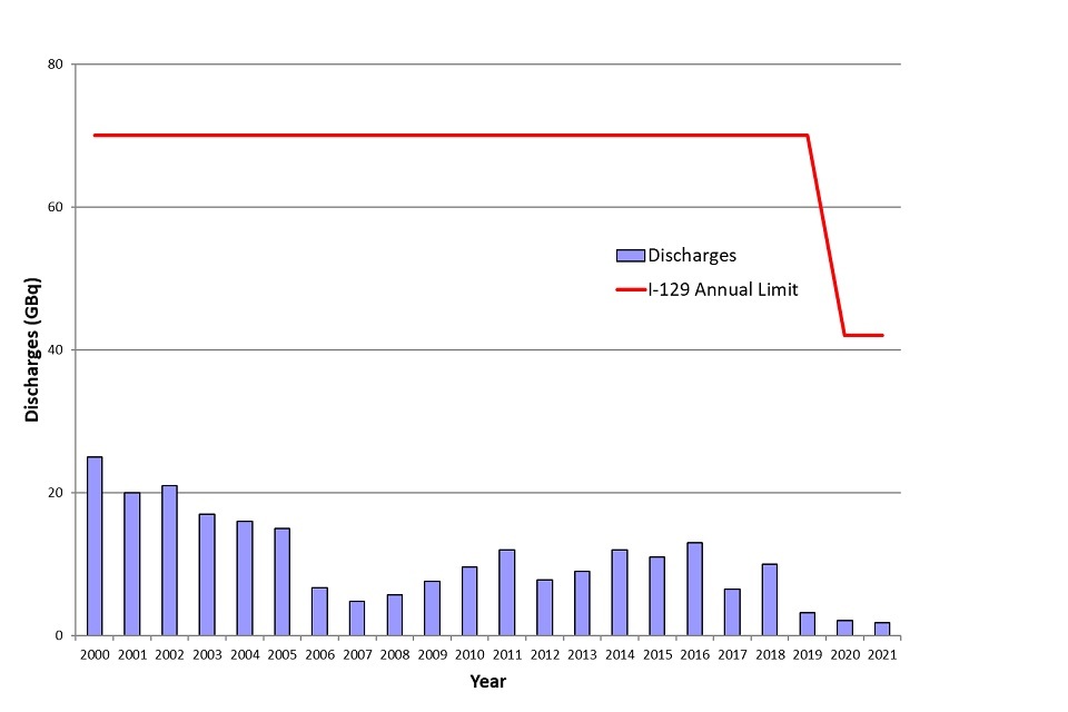 There were no instances in 2021 of non-compliance with the numerical limits of permits regulating discharges and disposals of radioactive wastes at Sellafield. Radioactive discharges (aerial and liquid) were well below the permitted limits and were generally lower than those in 2020.