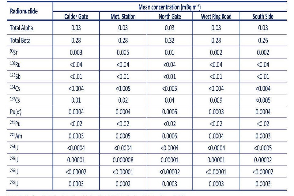 The monitoring of the wells located around the site perimeter (which detect any migration of radioactivity from the site) have shown consistent results, indicating no significant levels of radioactivity have reached the site perimeter over this time period.