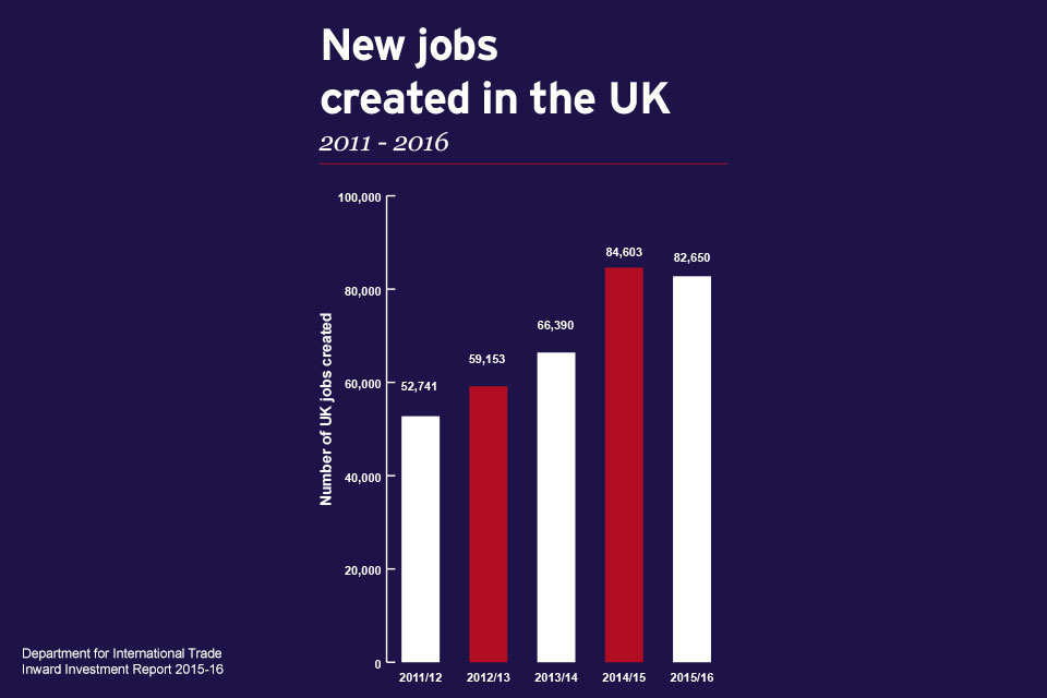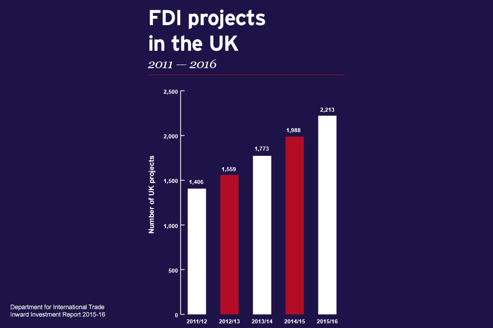 DIT’s definition of FDI projects covers wider types of investment, including those projects which are not announced by companies. This and other differences in methodology and verification processes explains the difference in the FDI project numbers published by DIT and other organisations, such as FT and EY.