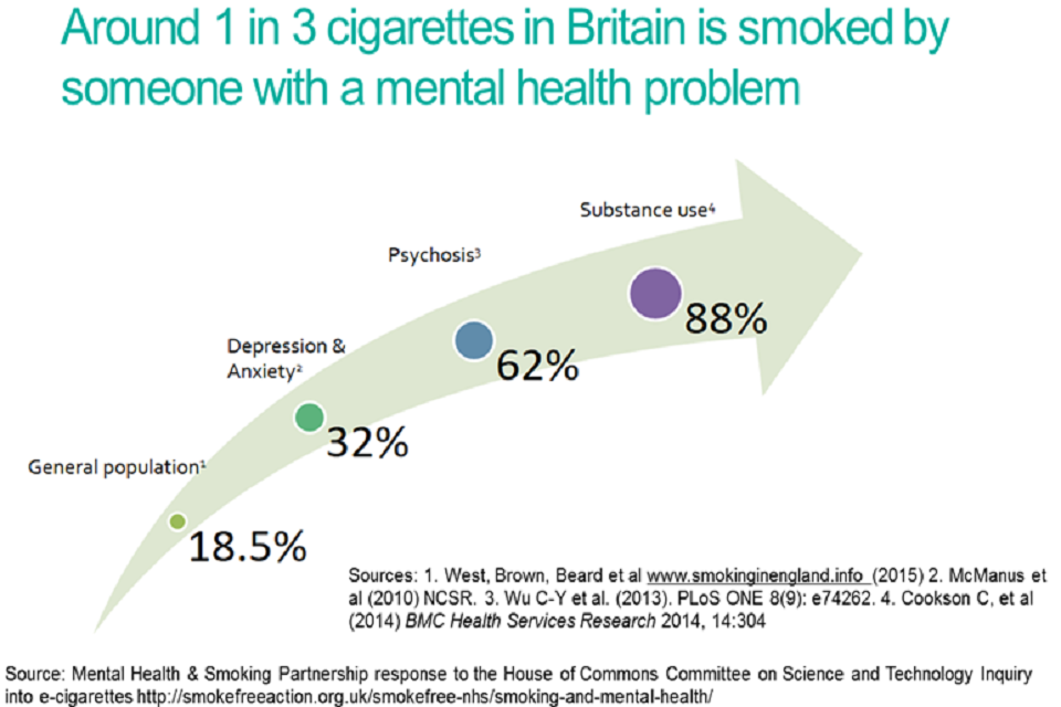 Graphic shows different smoking rates of different groups of people who have mental health or substance misuse problems