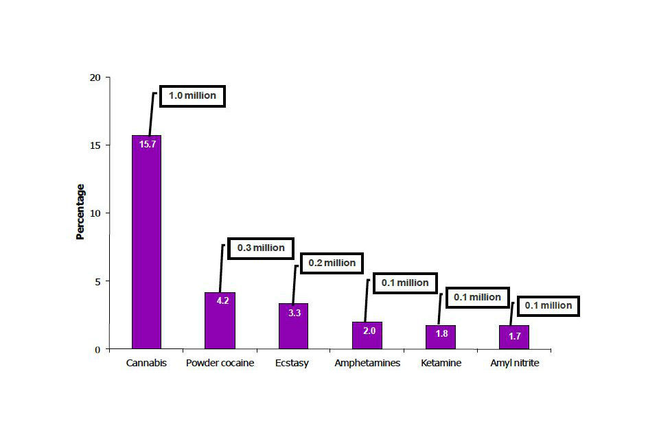 - around 15.6% of adults had ever taken a Class A drug in their lifetime (five million people);