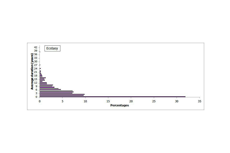 Figures for last year use of ecstasy were the same in the 2011/12 and 2010/11 (1.4%) surveys but there has been a statistically significant decline in the long term from 1.8% in 2000 (the comparison with 1996 (1.7%) was not statistically significant).