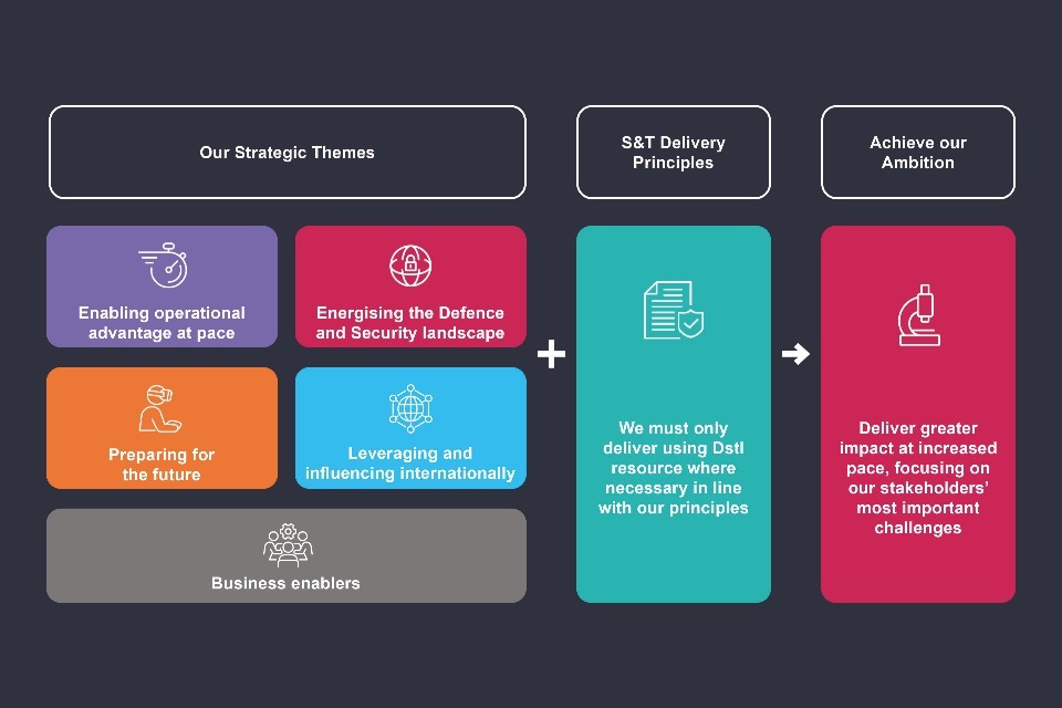 This Corporate Plan sets out how we will do that over the coming 5 years in line with our new strategy. This strategy aims to ensure Dstl is delivering greater impact at pace and is focussed on addressing the most important challenges for UK defence and security. It is based around 4 themes: