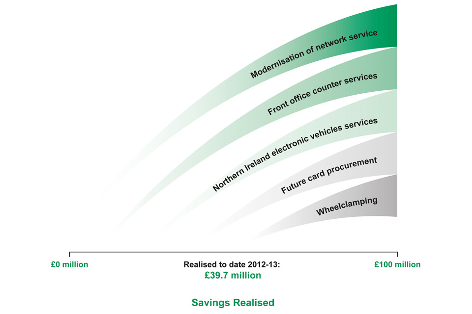 A theme running through this business plan is making further improvements in our efficiency and effectiveness as we continue to build on the £39.7 million achieved to save £100 million in our annual running costs by 2014 to 2015. In recognition of this change to our operating cost base, we will conduct a review of fee income and future investment requirements and propose a strategy for the future that rebalances and limits charges imposed on motorists whilst ensuring the long-term continuation of DVLA services.