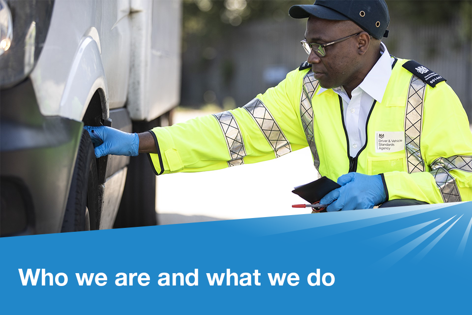 We carry out driving tests, approve people to be driving instructors and MOT testers, carry out tests to make sure lorries and buses are safe to drive, carry out roadside checks on drivers and vehicles, and monitor vehicle recalls.