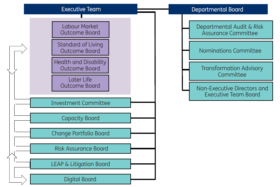 The Department is led by the Secretary of State for Work and Pensions and the Permanent Secretary, who is the most senior civil servant. The Permanent Secretary and Directors General form the Executive Team, the senior decision-making body, providing corporate leadership for the Department.