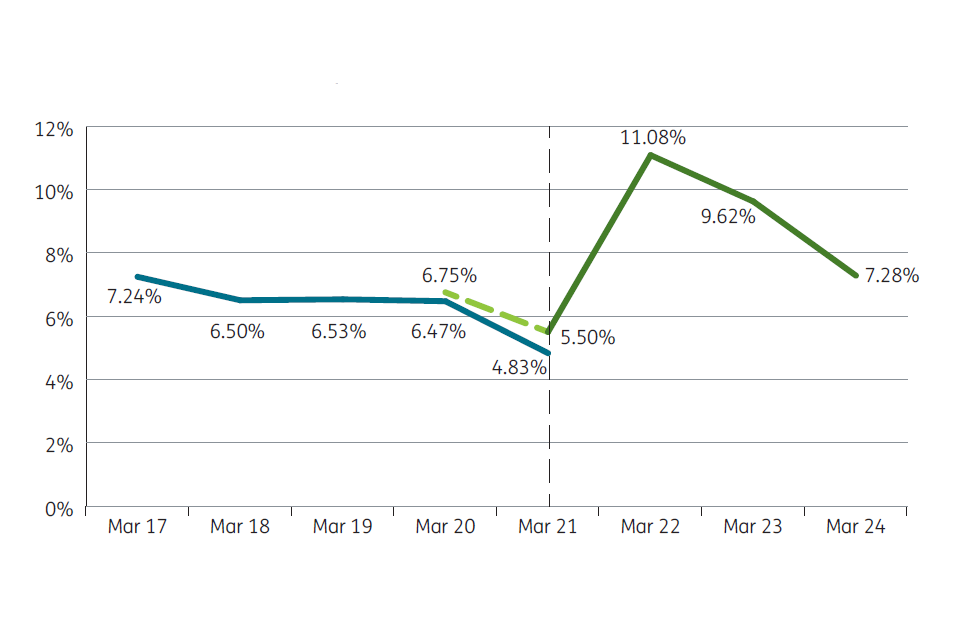 2021 to 2022 and 2022 to 2023 data restated due to a change in methodology. ↩