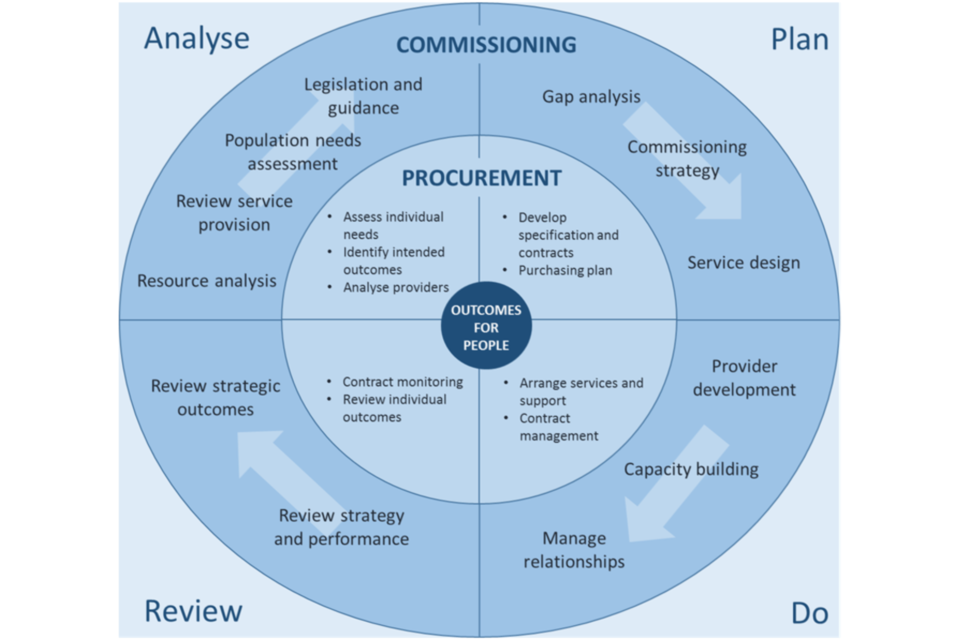 The Category will apply a rigorous and objective strategic approach to test all our activities against the opportunity to deliver in-house or use external suppliers. Commissioning and procurement are the processes for deciding how to use the total resources available in order to improve outcomes and purchase goods and services in the most efficient, effective, equitable and sustainable way.