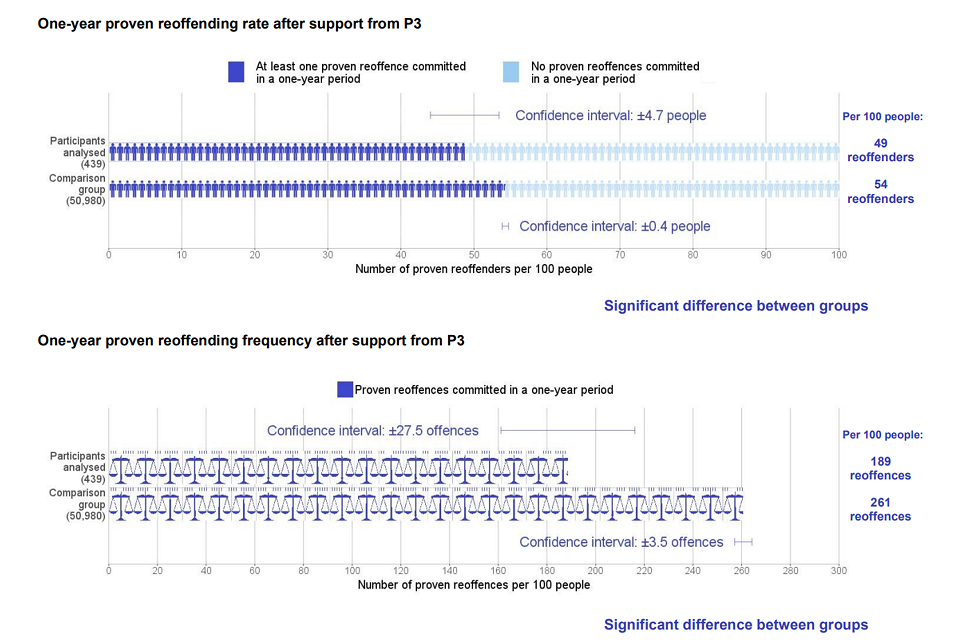MoJ (2020) Justice Data Lab analysis: Reoffending behaviour after support from P3 Link Worker Services. Link: https://assets.publishing.service.gov.uk/government/uploads/system/uploads/attachment_data/file/856720/P3_JDL_report_Jan_2020.pdf Accessed on 30th October 2020.