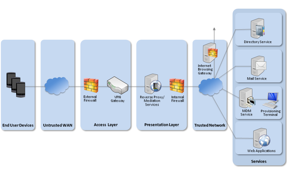 It is recommended that all remote or mobile working scenarios use a typical remote access architecture based on the Walled Garden Architectural Pattern.