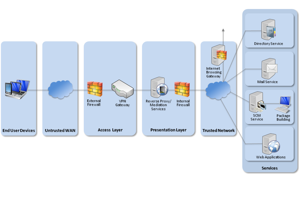 All remote or mobile working scenarios use a typical remote access architecture based on the Walled Garden Architectural Pattern.