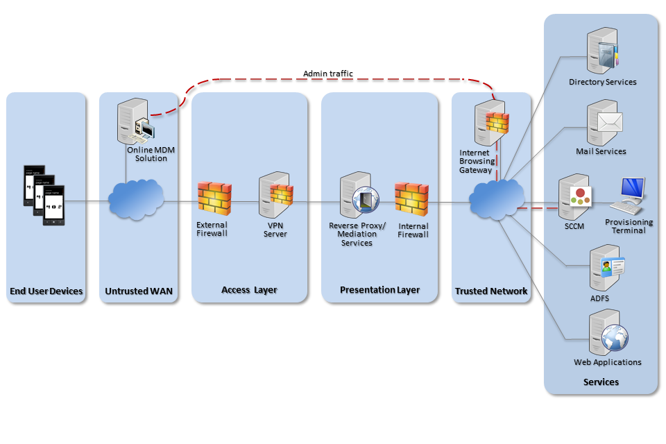 Recommended network architecture for Windows Phone 8.1 deployments using an on-premises MDM solution