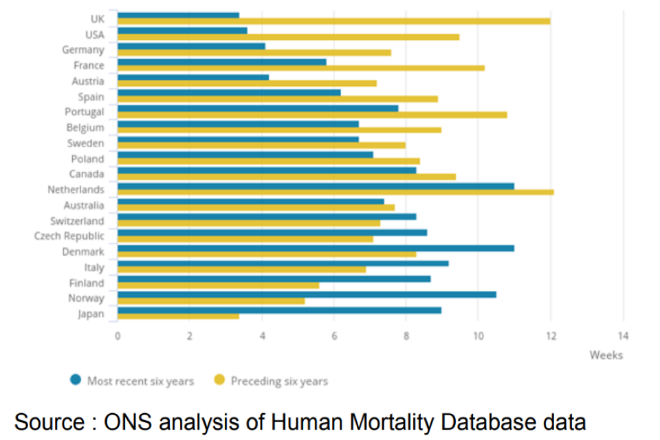 Source: ONS analysis of Human Mortality Database data eNews from GAD subscribers will be given the option to subscribe to the GAD mortality insights bulletin once the first edition of this new bulletin is available.
