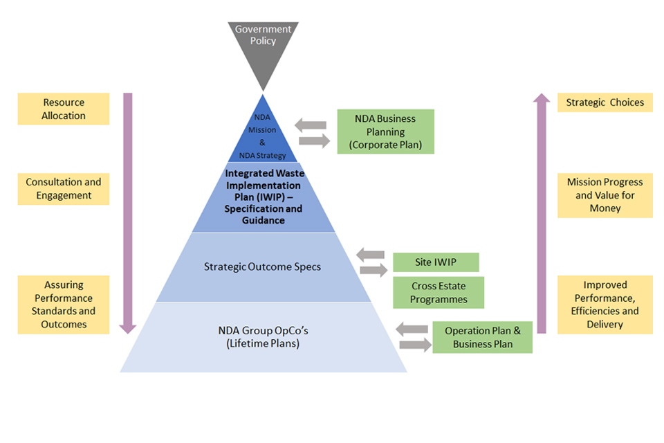 An IWIP will ensure that there is a clear thread from Her Majesty’s Government (HMG) and Devolved Administrations (DA) policies, through NDA and site waste strategies, to the implementation of site waste management plans. Such a thread will enable the beneficial development of each to be influenced by the other, facilitated by a clear flow of information between relevant stakeholders and authorities. This enables Site License Companies (SLCs) to actively influence the future decision-making process, providing a clearer understanding and visibility to the NDA of the current and future site/estate needs.
