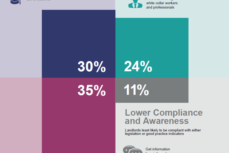 One in ten landlords fell into the ‘lower compliance and awareness’ cluster, who displayed patterns of limited compliance across the range of legal requirements and good practice indicators.