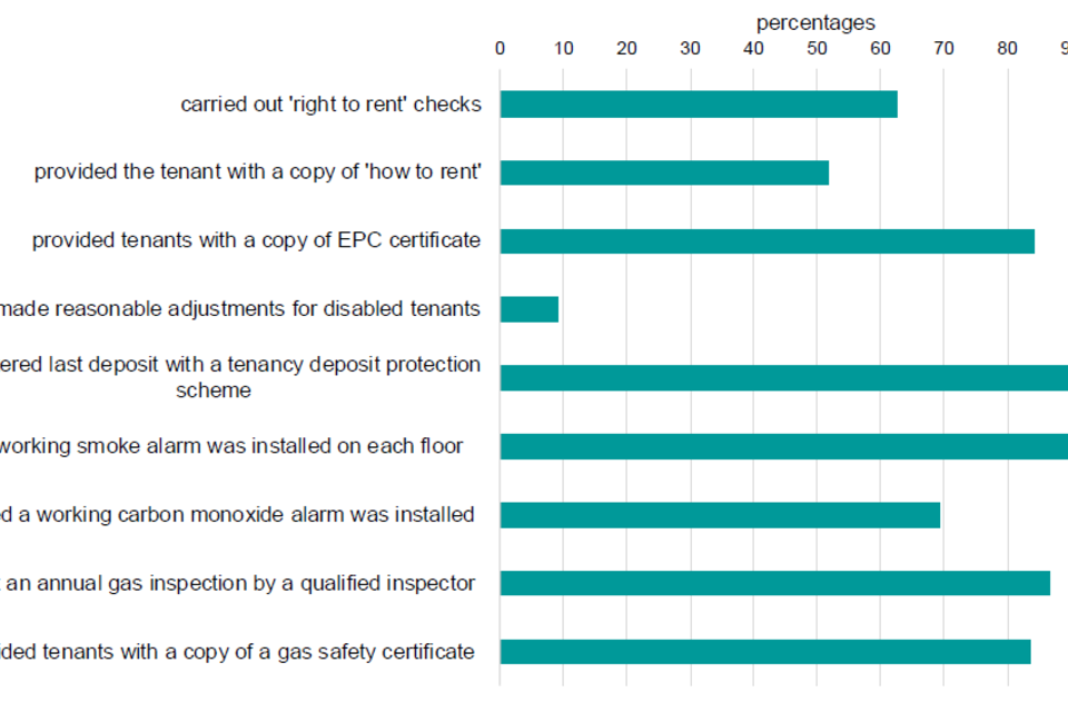 Landlords likely to report mixed compliance with legislation for last let, though many comply with good practice indicators.