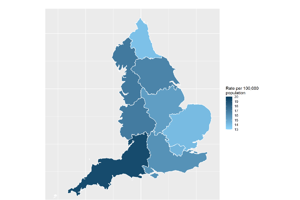 | West Midlands | 12.8 | 14.3 | 15.5 | 15.4 | 16.9 |