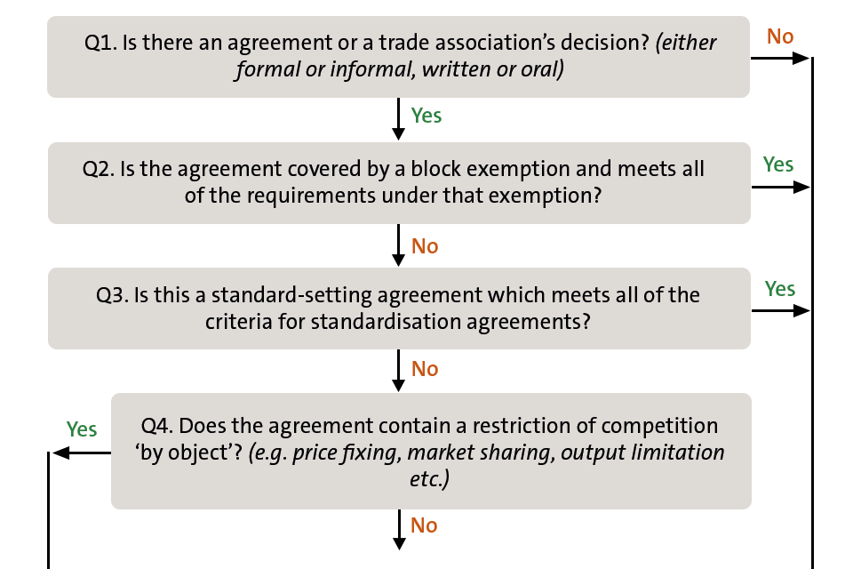 This flowchart is structured as a set of questions that will give you an indication as to whether your sustainability agreement could break competition law. It should be looked at alongside the more detailed information in the relevant sections of this document.