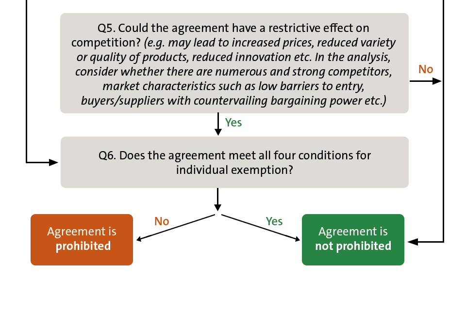 Question 6: Does the agreement meet all four conditions for individual exemption? If yes, agreement is not prohibited. If no, agreement is prohibited.