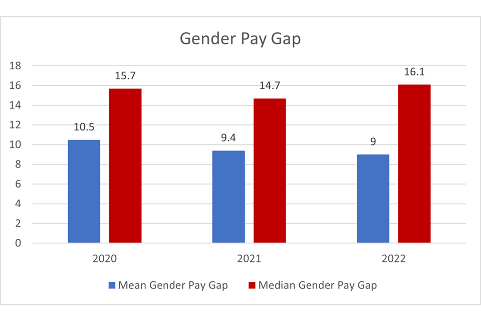 The headline 2022 Gender Pay Gap figures for the Insolvency Service show a reduction in our mean gender pay gap to 9% but the median gender pay gap of 16.1% is an increase.