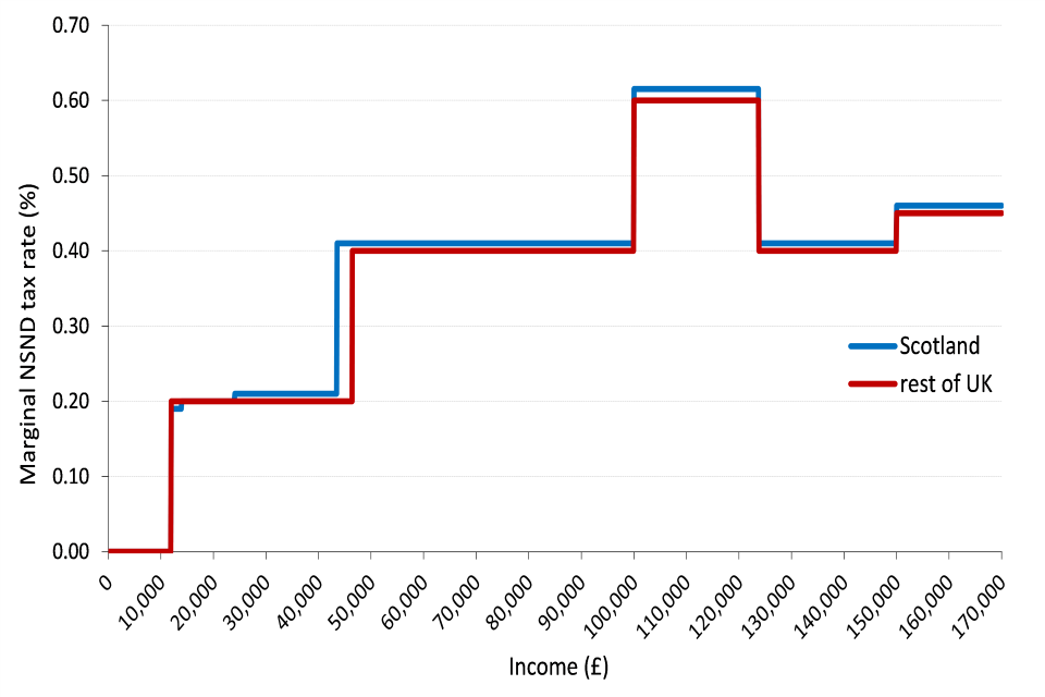 - From tax year 2017 to 2018 it has had the power to set the rates and thresholds for the non-savings and non-dividends (NSND) Income Tax paid by Scottish taxpayers (often known as earned income)