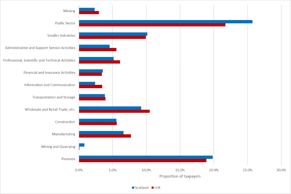 - We were able to use HMRC’s Self-Assessment (SA) and Real Time Information (RTI) data to compare Scottish taxpayers to a group of similar taxpayers from rUK - since Income Tax rates remained the same in rUK, any differences in income declared are assumed to be due to the introduction of the policy