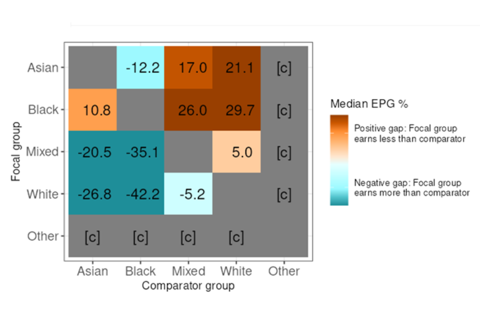 Since 2021, the CMA has reported on EPG using guidance set out by the by the Department for Business and Trade (DBT) and the Commission on Race and Ethnic Disparities (CRED). However, for 2024 to 2025, a common methodology for EPG reporting has been implemented across all Civil Service departments. The methodology provides departments with a more detailed way of viewing the ethnicity pay and bonus gaps, whereby figures are based on comparing a ‘Focal group’ with a ‘Comparator group’, showing how each ethnic group compares to each other, rather than grouping all ethnic groups and comparing these as a whole against the ‘White’ group.