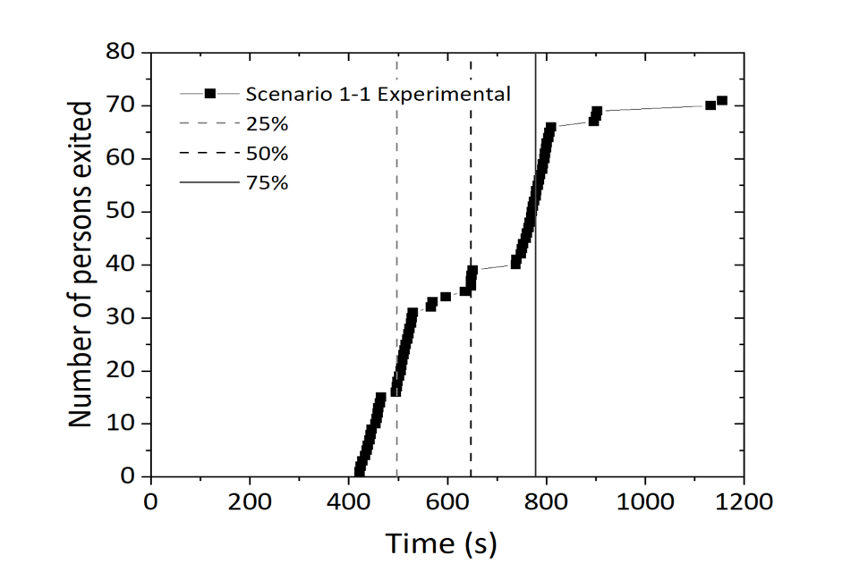 The ’experimental time’ presented throughout this report corresponds to the time elapsed after the switch from ‘stay put’ to each ‘full evacuation’ strategy. In this report, timings are generally presented as minutes and seconds, but may additionally be reported as seconds only, to correspond with the labelling of analytical graph axes.