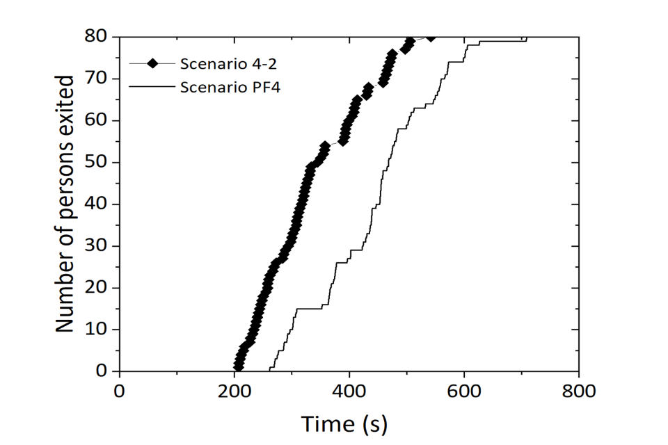 The findings suggest that the Pathfinder modelling software, using data from live operational tests, may accurately predict these outcomes via software simulations. This would help reduce the need for full-scale live operational tests to consider changes in evacuation scenario parameters (or might enhance confidence in the test results by allowing replication).