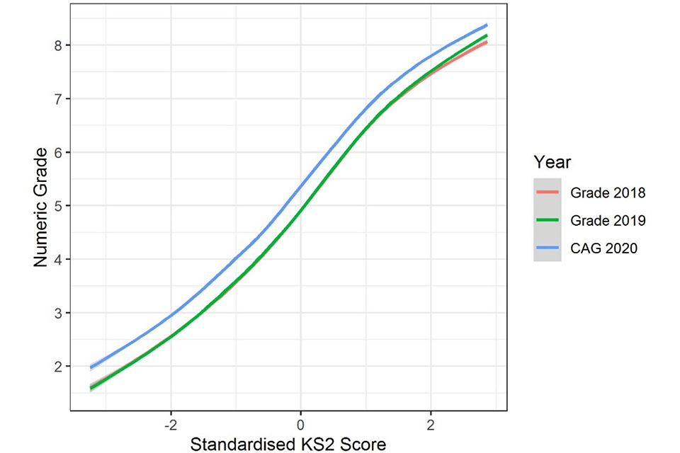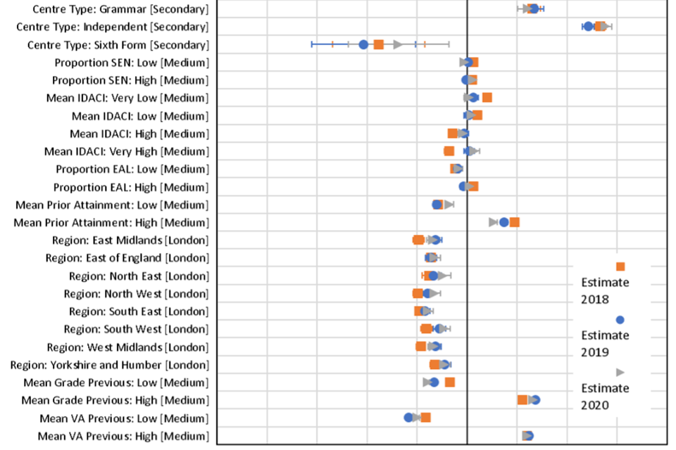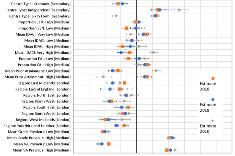The main aim of this study was not to measure the size of the overall change in grades in 2020, since this has been carried out in detail previously (He & Black, 2020). Instead, we aimed to identify if the factors related to grades in 2020 based on teacher judgement differed from the factors related to grades awarded in previous years in a consistent way, in terms of candidate, centre or subject characteristics.