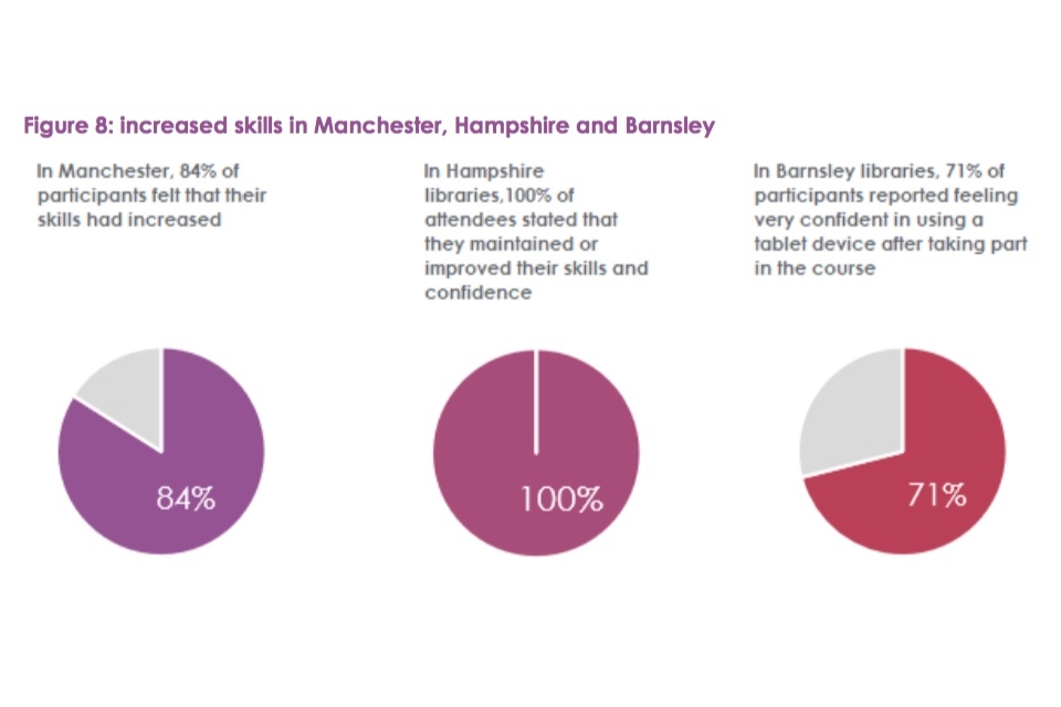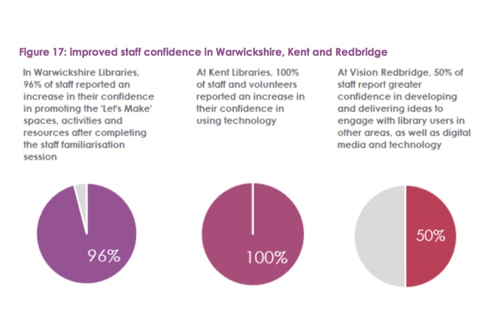 - improved digital confidence and skills among library staff, which bolstered libraries’ offers and improved their position as a service provider