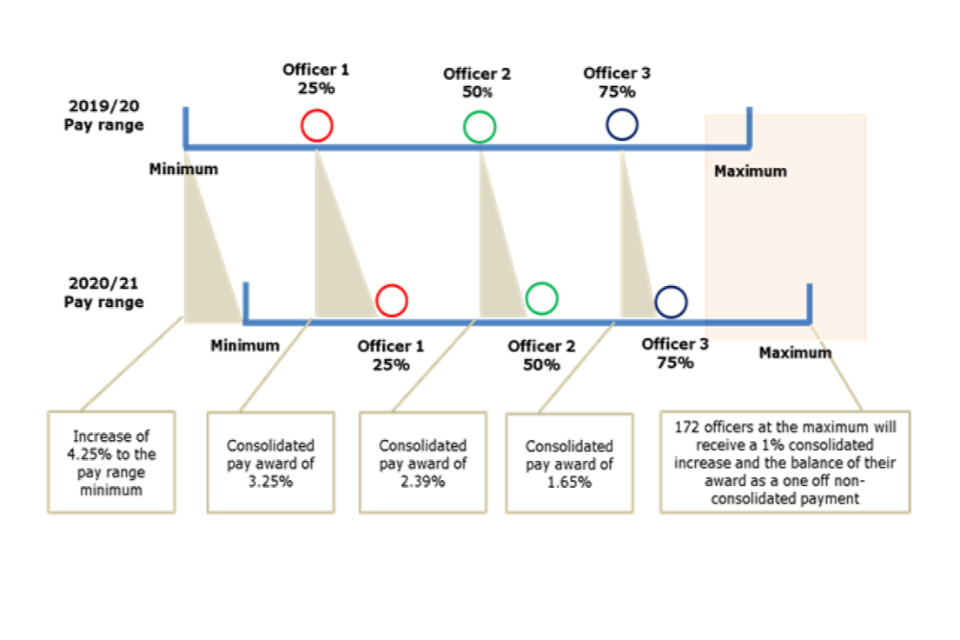 - Proposal 3: For officers on the standard pay ranges, offer a pay award of at least 1.5% that is capped at their pay range maximum.