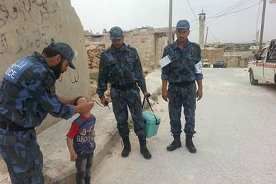 Members of the Free Syria Police (wearing their UK funded uniforms) taking part in the Assistance Coordination Unit’s polio vaccination campaign in May 2014.