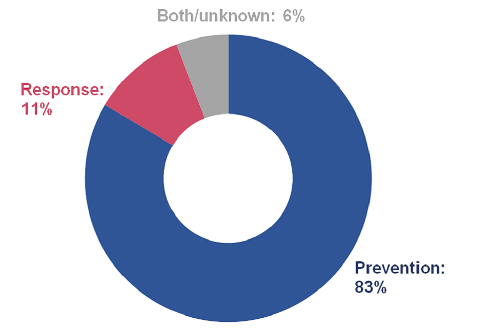 Data in chart – Prevention: 83%, Response: 11%, Both/unknown: 6%