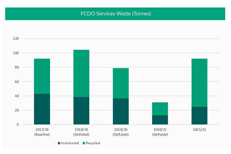 FCDO Services has increased its focus on sustainability in 2021/22 with the creation of a dedicated sustainability team to drive improvement. FCDO Services will maintain its stance under the FCDO umbrella, aligning with the FCDO’s ISO 14001 accreditation and collaborating with the FCDO towards delivery of Greening Government Commitments (GGC) 2021-25 targets and the FCDO’s Sustainability Action Plan 2020-25. We have developed a Sustainability Improvement Programme to engage across the organisation to ensure compliance, reviewing standards, processes and capabilities. Read more about this in the dedicated section later in this report.