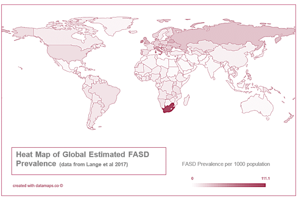 Lange S, Probst C, Gmel G, et al. Global prevalence of fetal alcohol spectrum disorder among children and youth: a systematic review and meta-analysis. JAMA pediatrics. 2017;171(10):948-56. ↩ ↩2