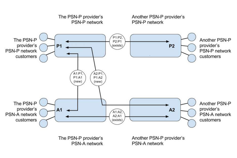 There are 5 PSN-P providers. Government requires these providers to implement a simple and scalable solution to ensure all PSN network customers can reach each other by default. The solution must work for customers connected to any PSN network, not just from a network supplied by one of the PSN-P providers.