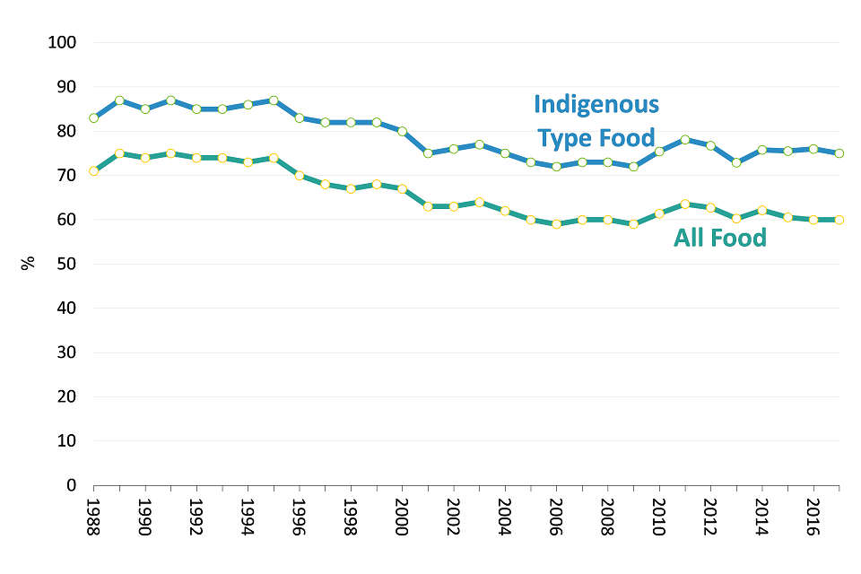 UK Food production to supply ratio 1988 to 2017