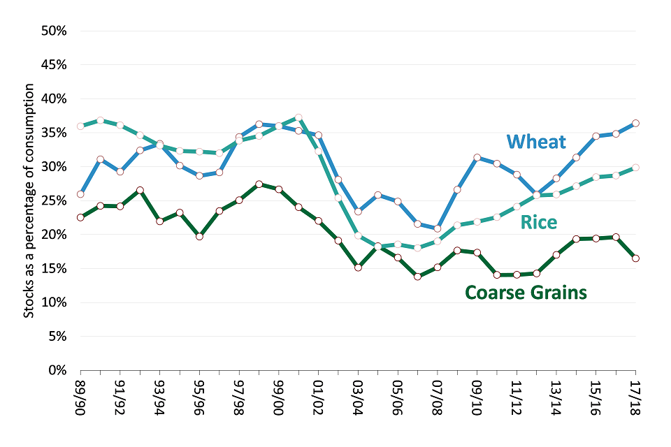 Wheat and Coarse Grain stocks have been on a rising trend in recent years, starting with the 2012-13 crop year8.