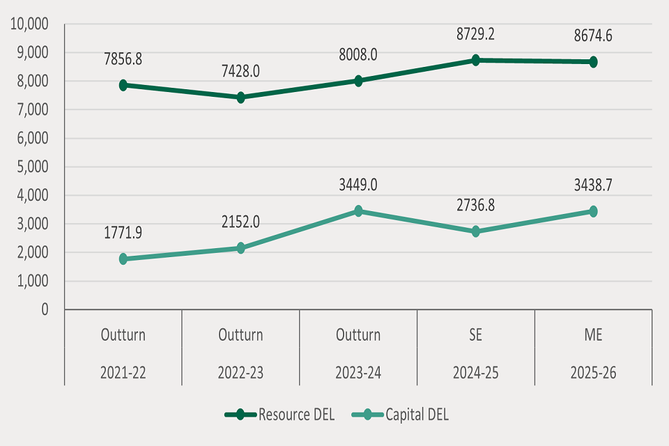 The main causes of the changes in Resource DEL are due to revised baselined budgets in the Phase 1 Spending Review 2024. This mainly includes: