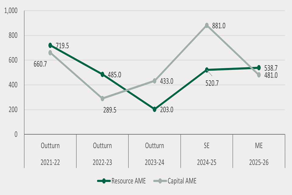 - Capital AME has returned to 2023 to 2024 volumes after additional investment of £400 million in 2024 to 2025