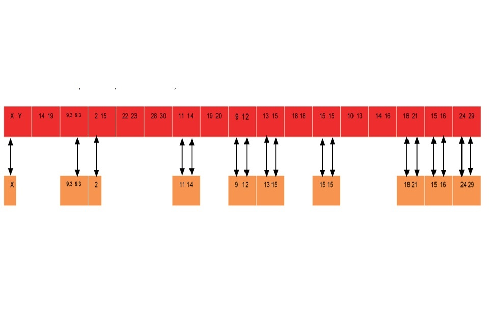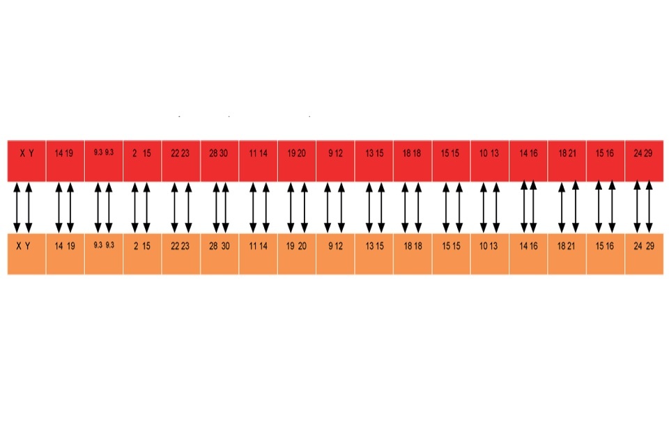X,Y; 14,19; 9.3,9.3; 12,15; 22,23; 28,30; 11,14; 19,20; 9,12; 13,15; 18,18; 15,15; 10,13; 14,16; 18,21; 15,16; 24,29