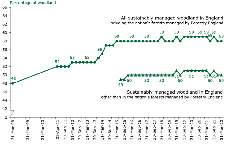 The Farm Woodland Standard launched as part of the Environmental Land Management Sustainable Farming Incentive pilot in autumn 2021. This includes requirements for open space and deadwood creation, and management alongside a condition assessment. 298 pilot participants took up the Farm Woodland Standard.